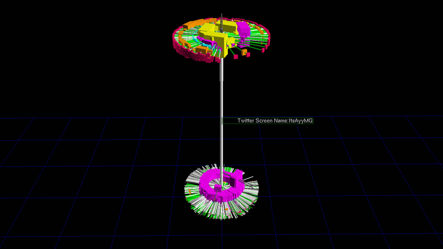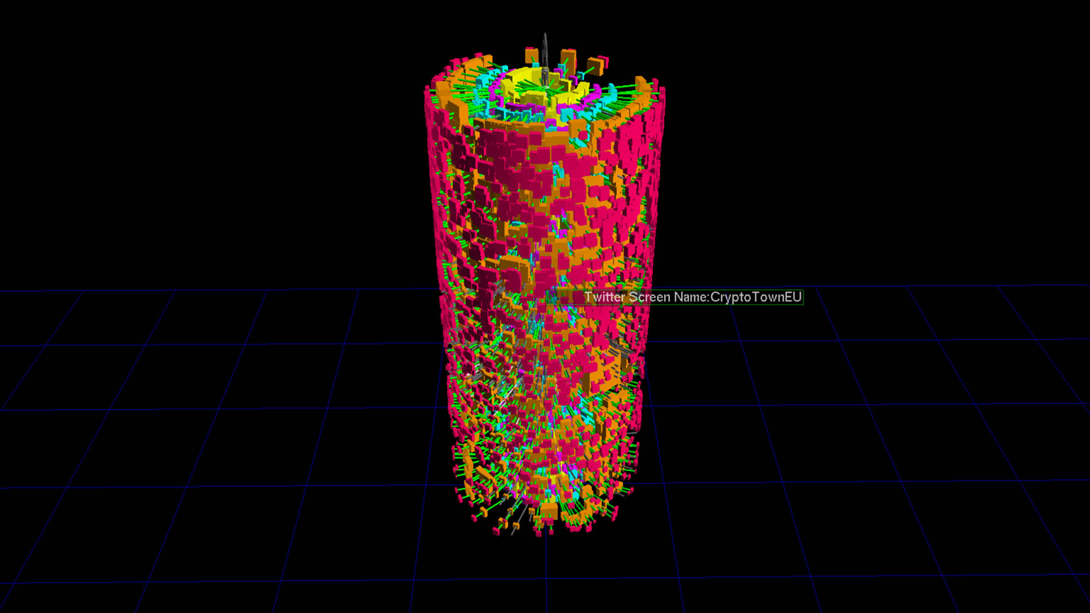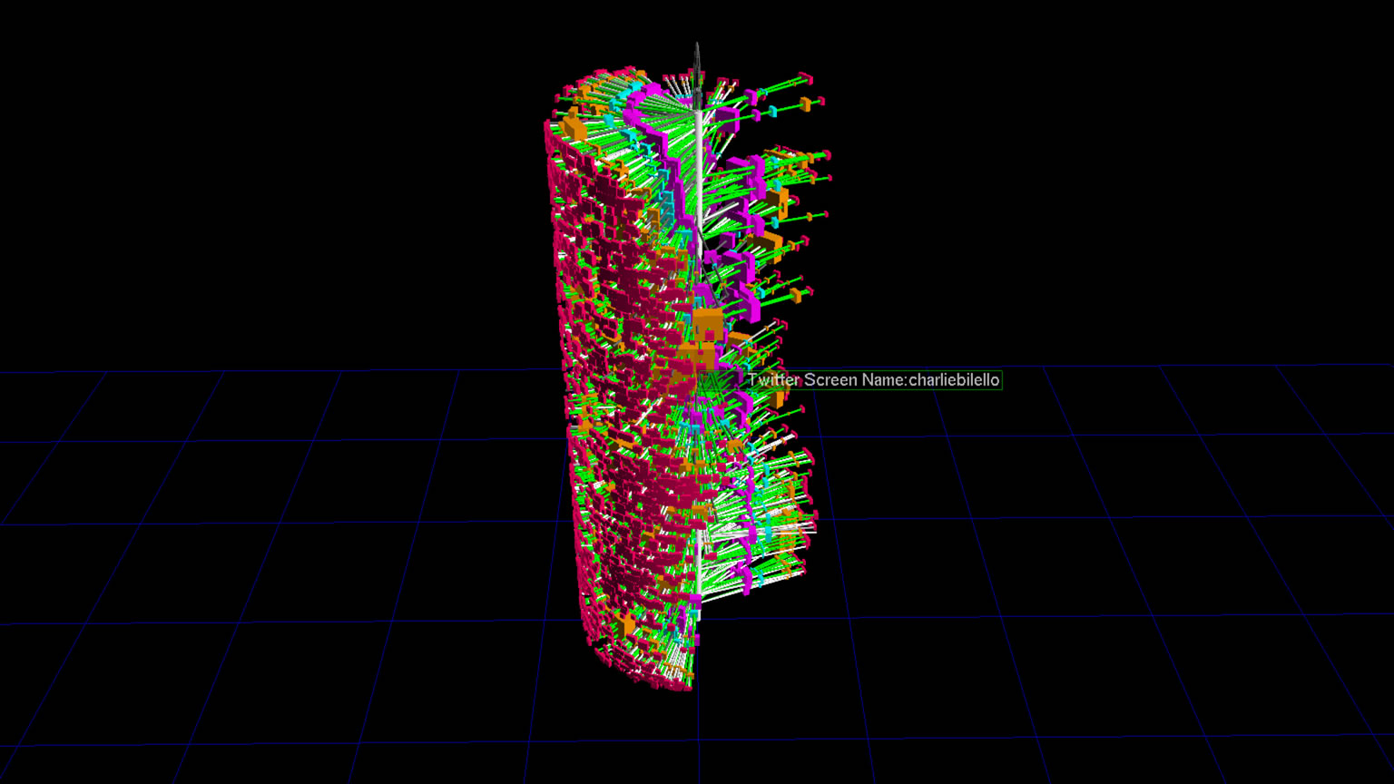 Below is a sample of Twitter timeline towers for users who were the most active 'tweeters' during a short period in early January, 2022. The Twitter API allows collecting the most recent 3200 tweets of any public user. Clicking an image below opens a larger version in a slideshow format with 'next' and 'previous' buttons.