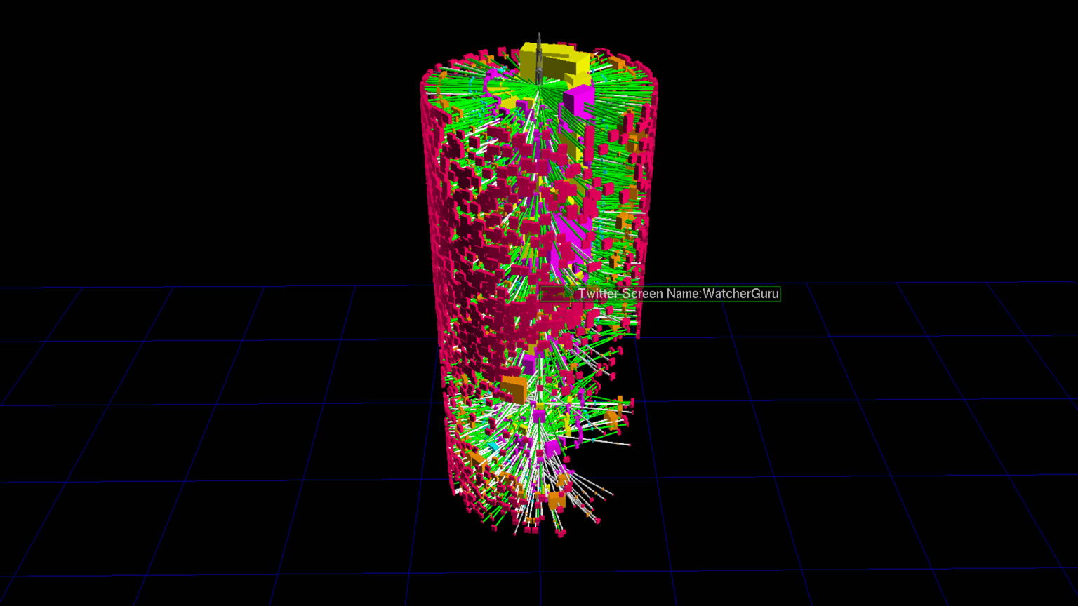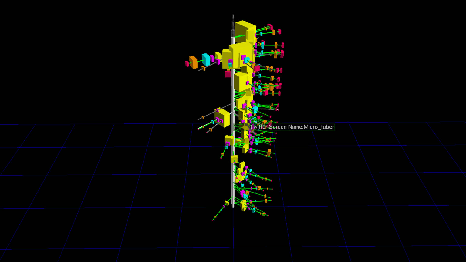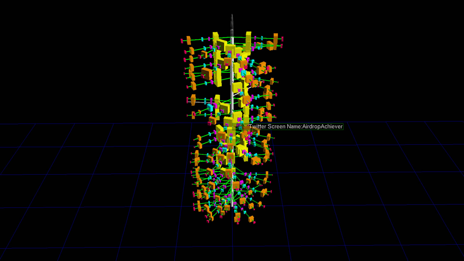 Below is a sample of Twitter timeline towers for users who were the most active 'tweeters' during a short period in early January, 2022. The Twitter API allows collecting the most recent 3200 tweets of any public user. Clicking an image below opens a larger version in a slideshow format with 'next' and 'previous' buttons.