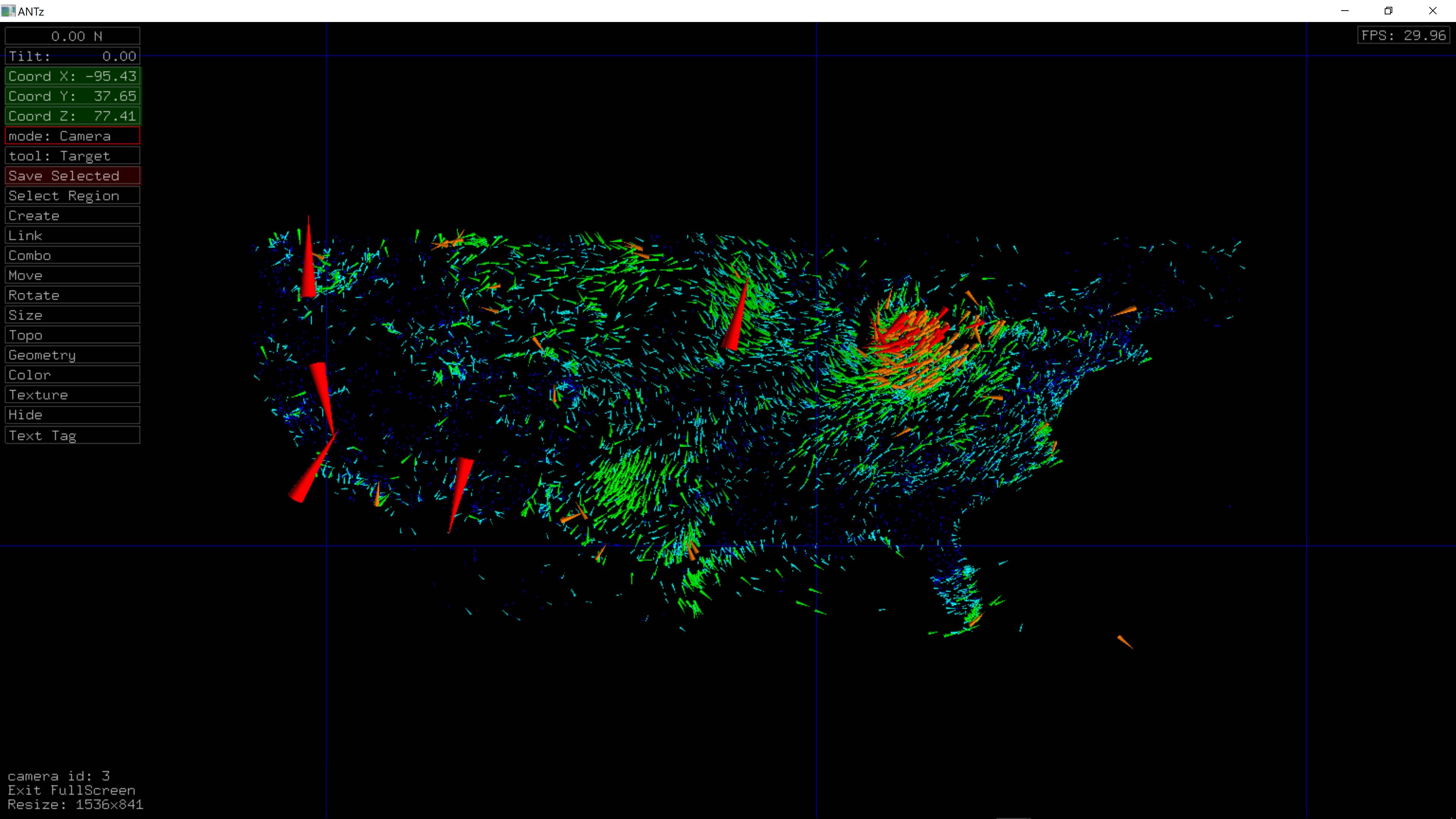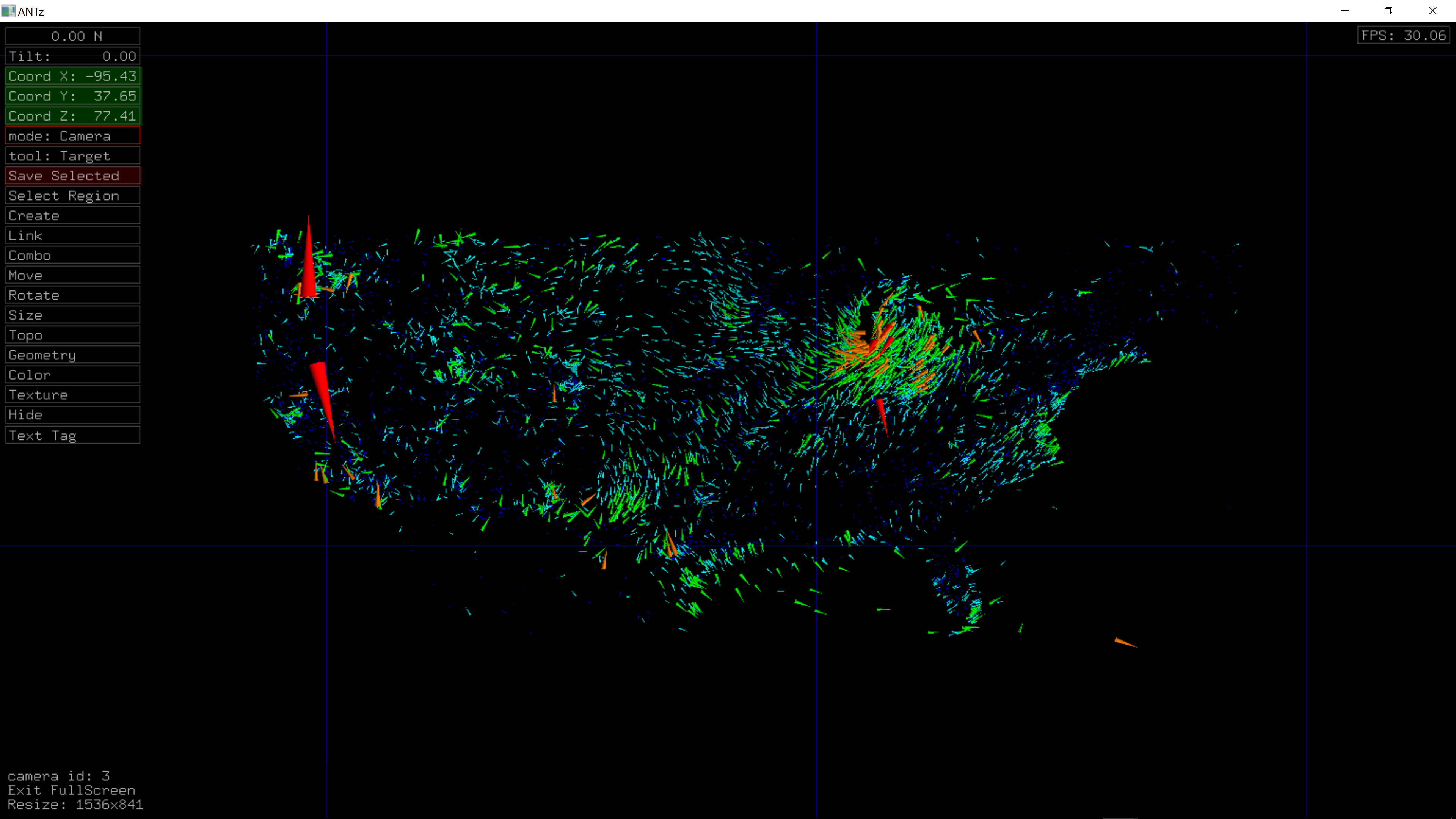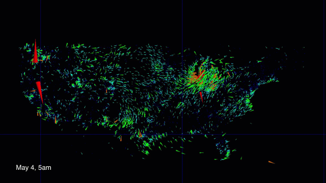 This visualization consists of nearly one months worth of data from a system of stations distributed across the continental US. Data was collected every 3 hours or 8 times per day.