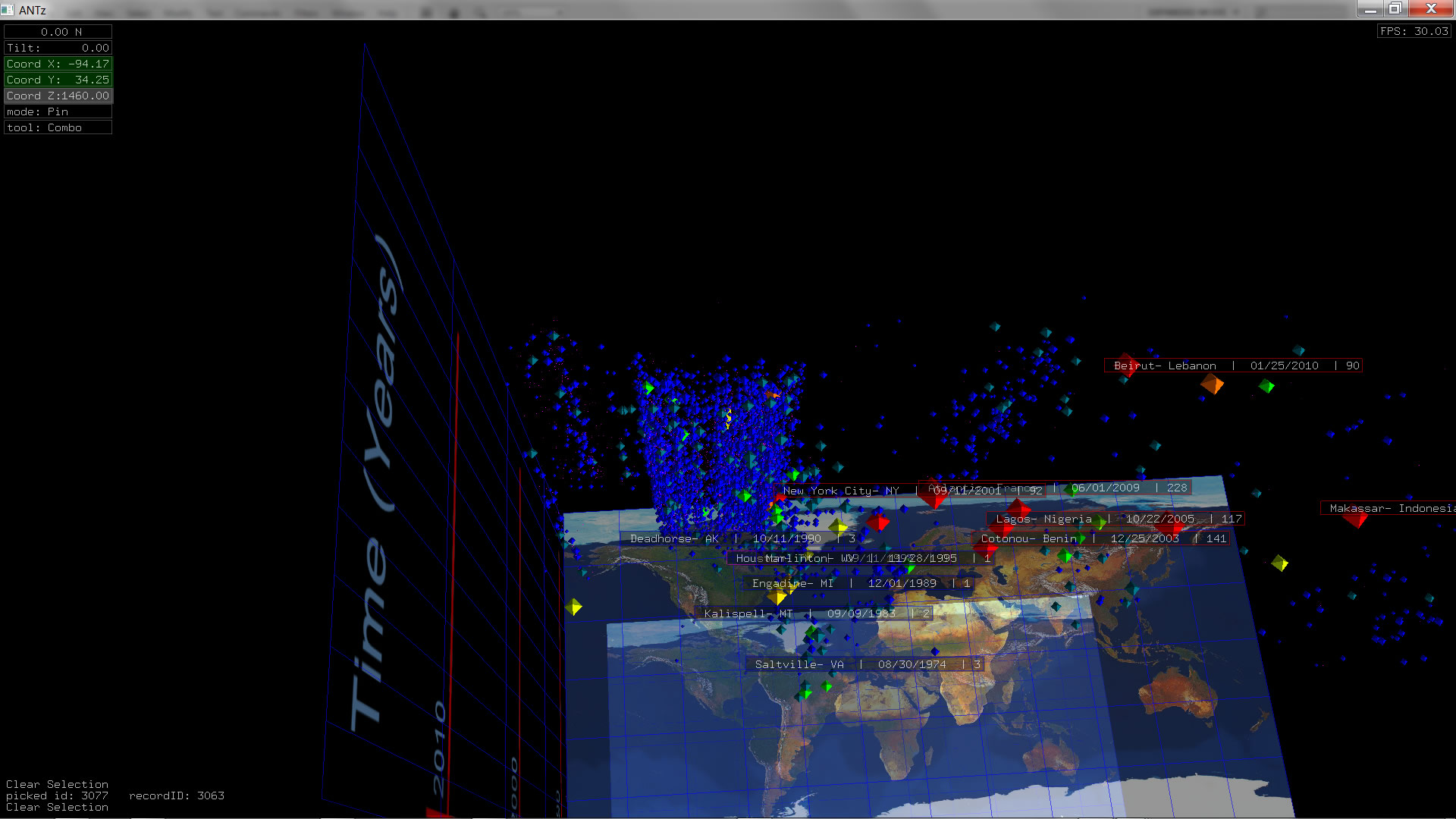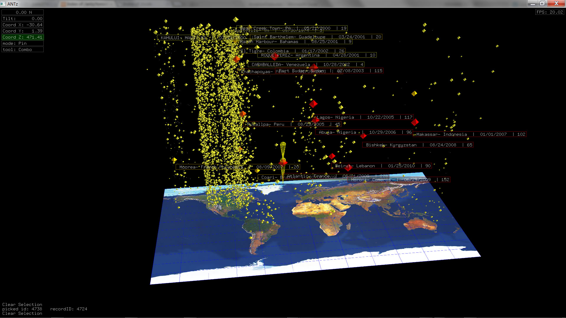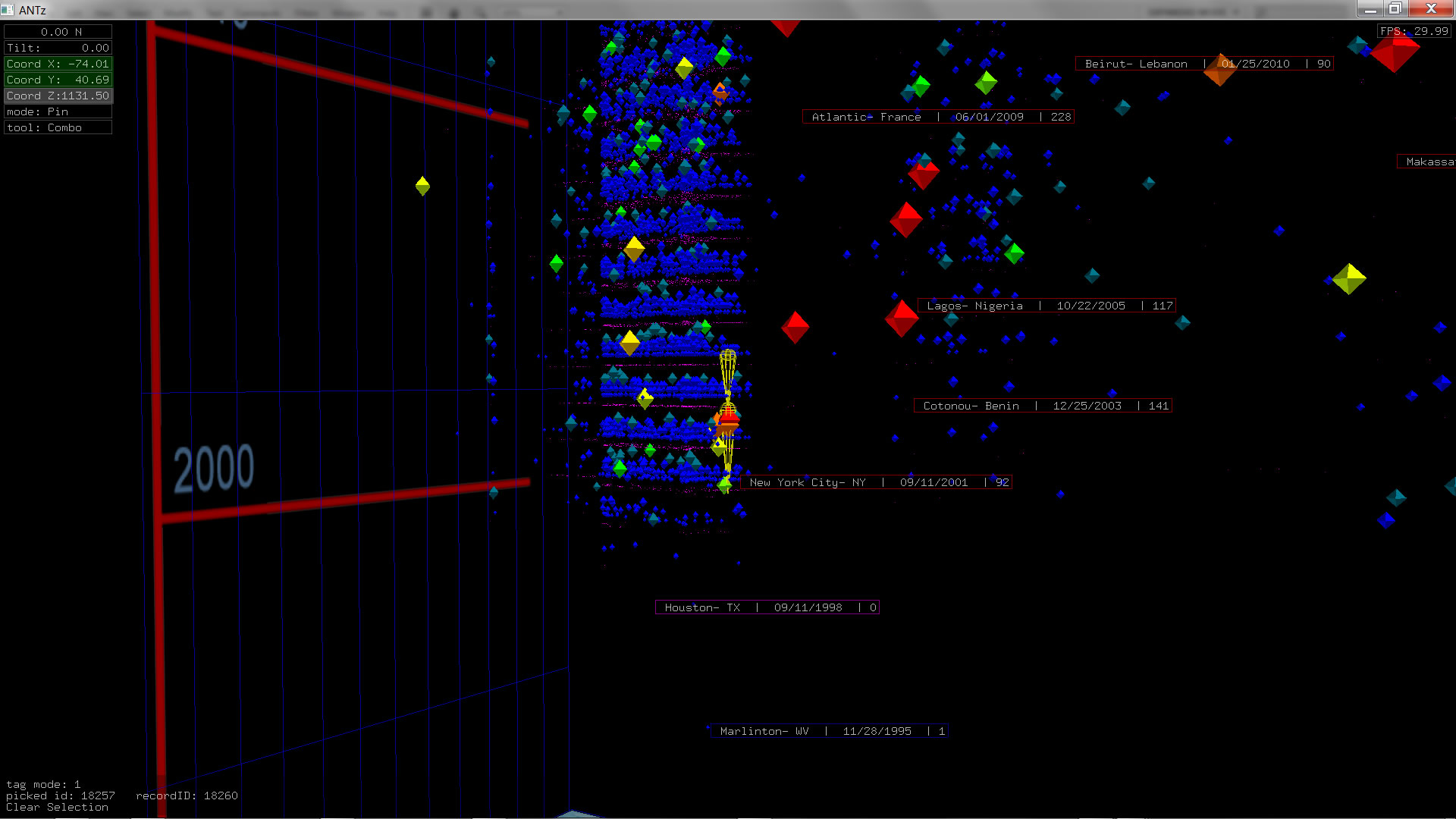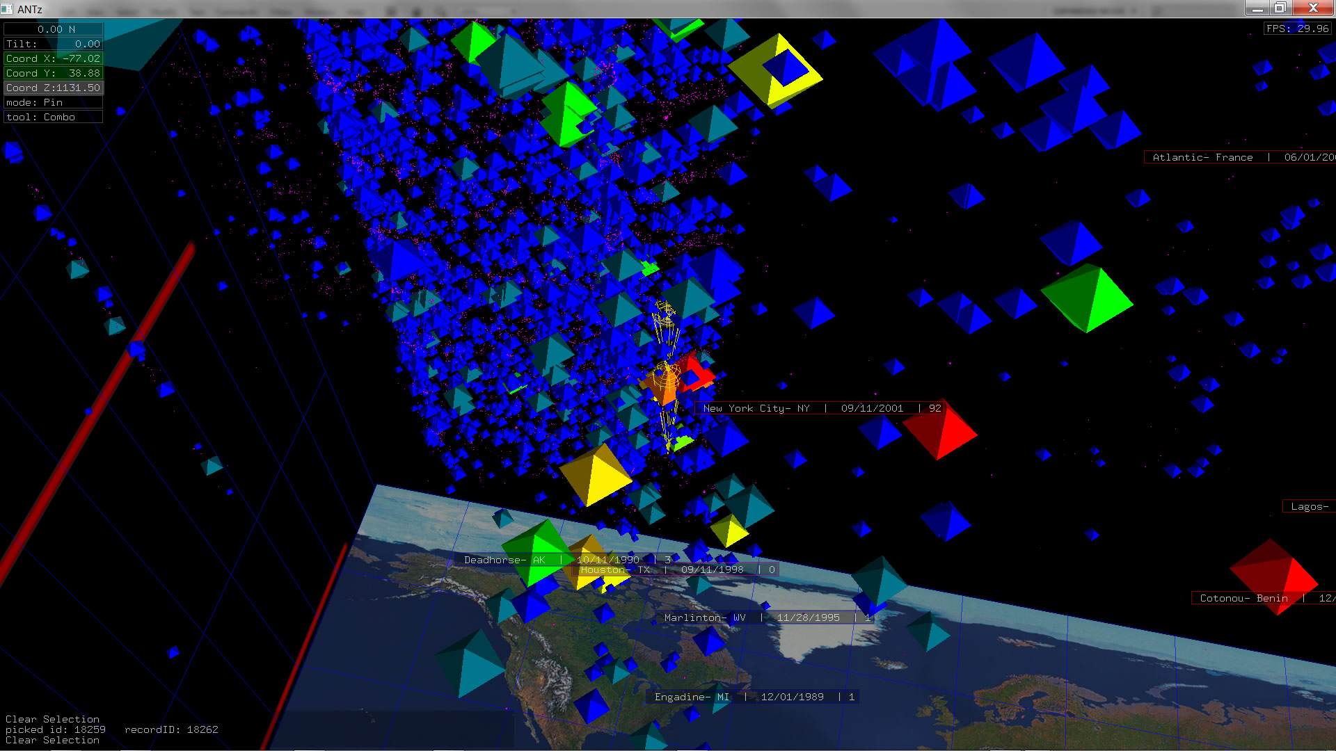 Extract the contents of the zip file. Double-click the antz_b.exe file to launch the app. Hit the 1 key to load the dataset. Hit the 'i' key to display object information.