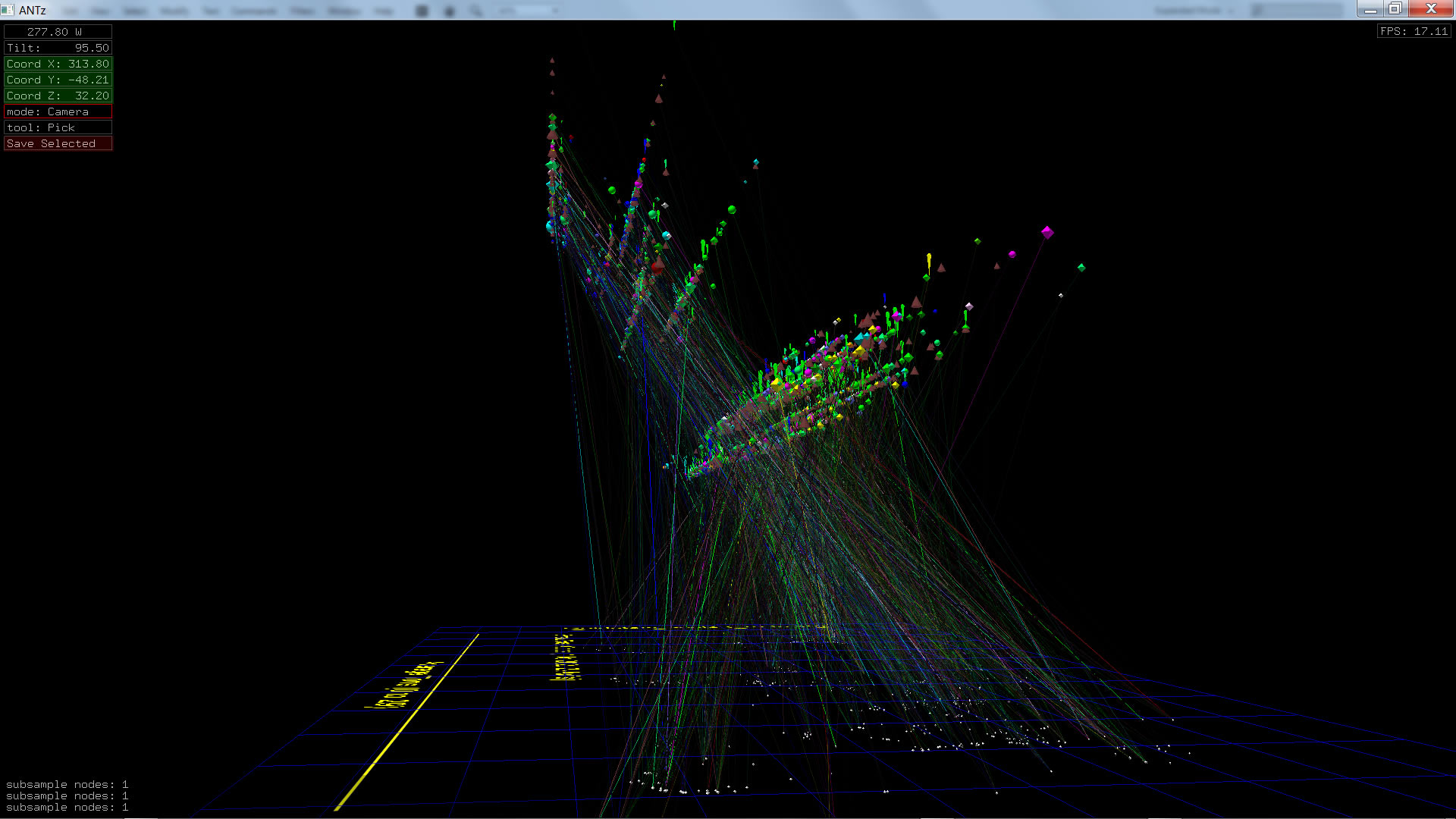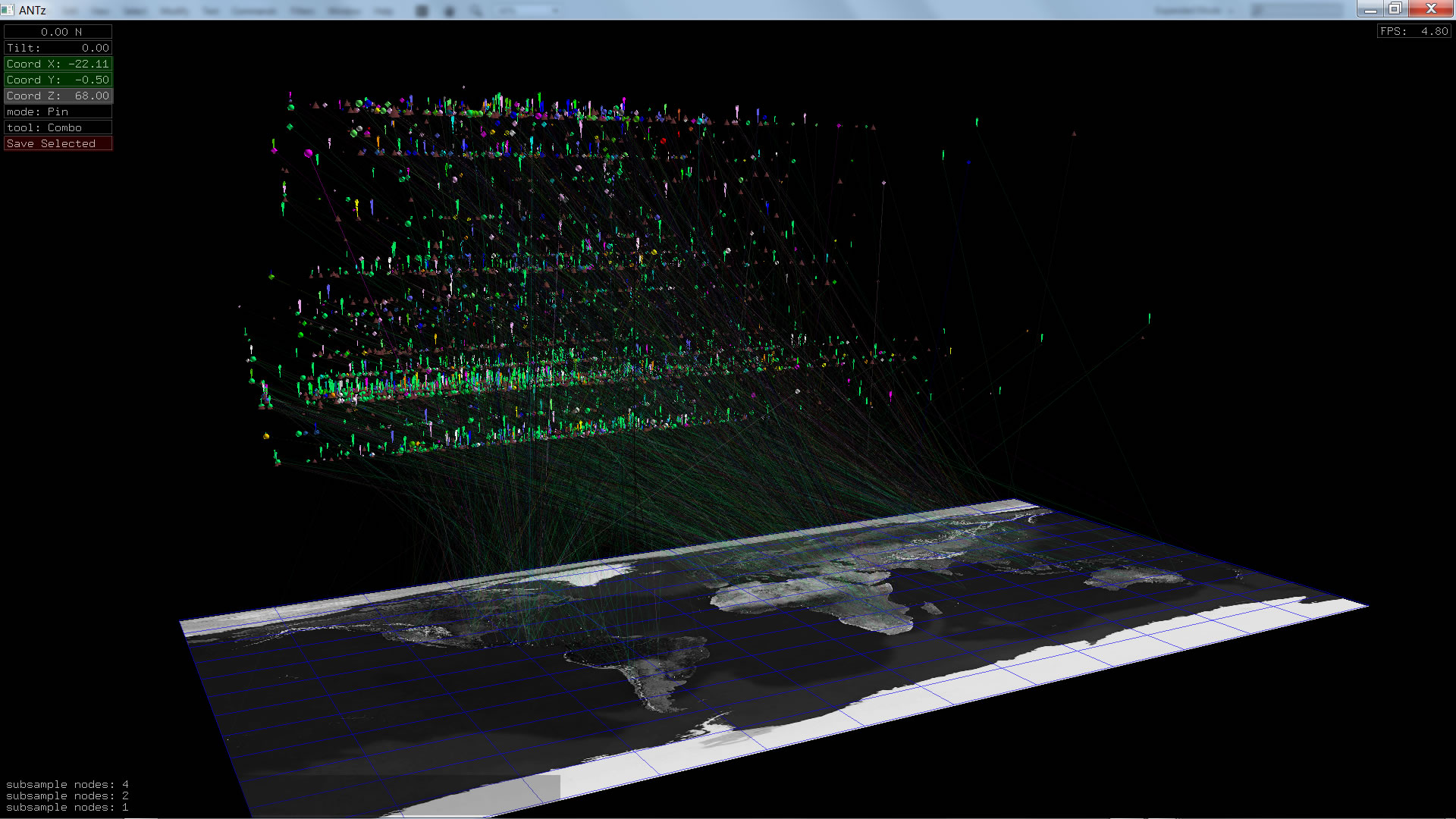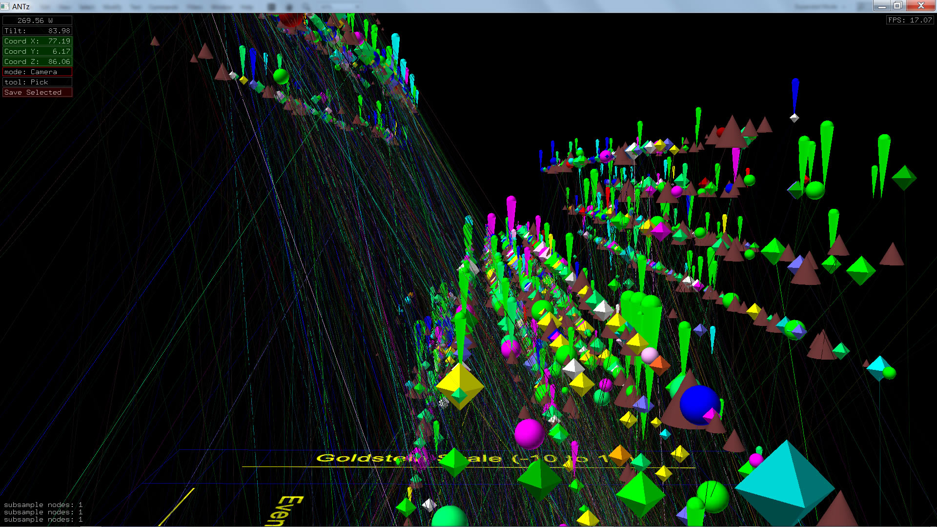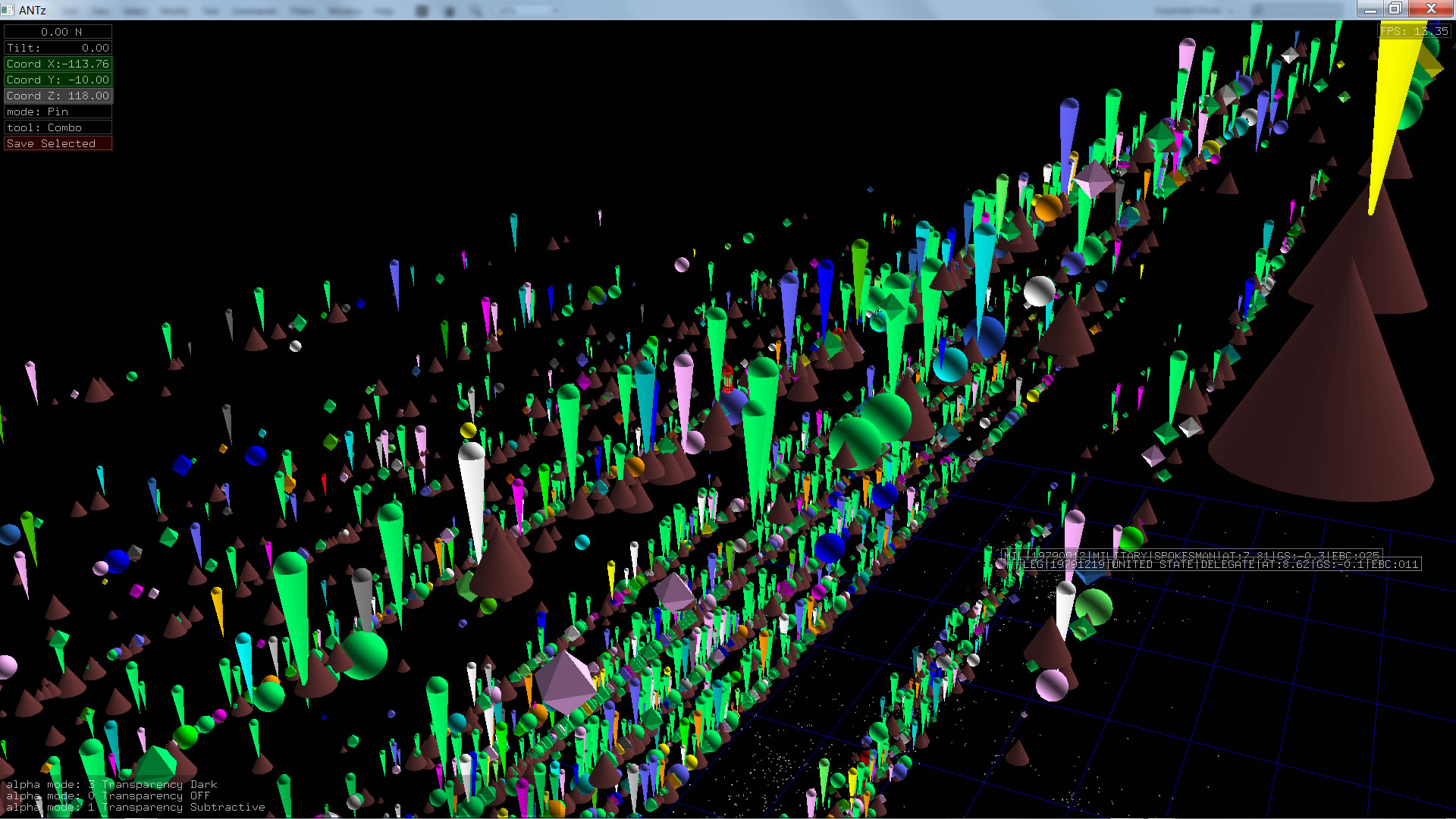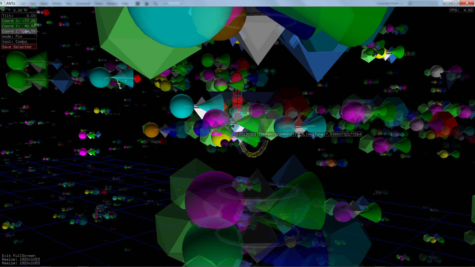 Color corresponds to Actor1Type1Code (NOTE: the Actor1Type1Code is also the first item in the object Labels). Legend TBD.