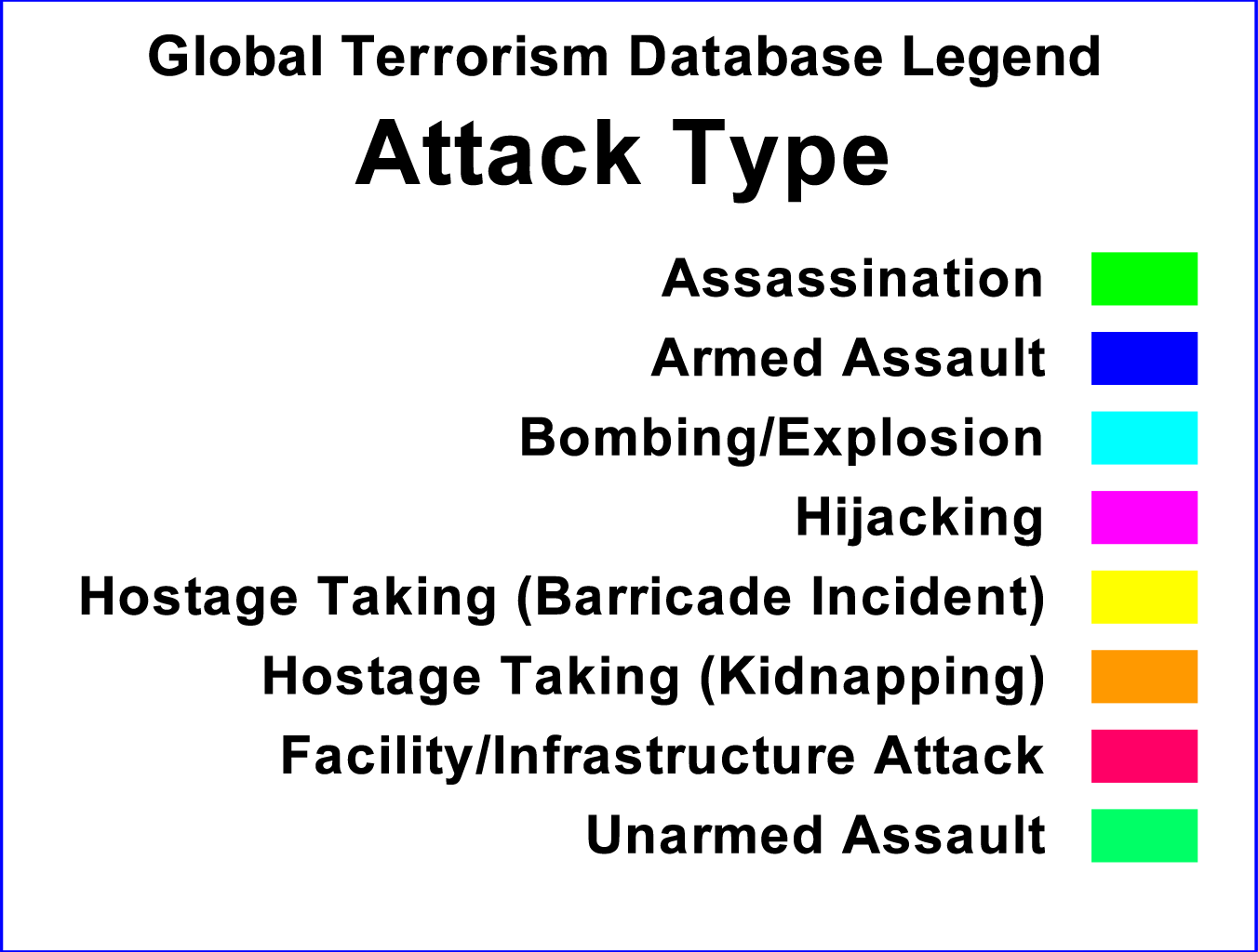 This data is courtesy of the Global Terrorism Database. Visit the GTD. Here's the official citation for their outstanding database:
