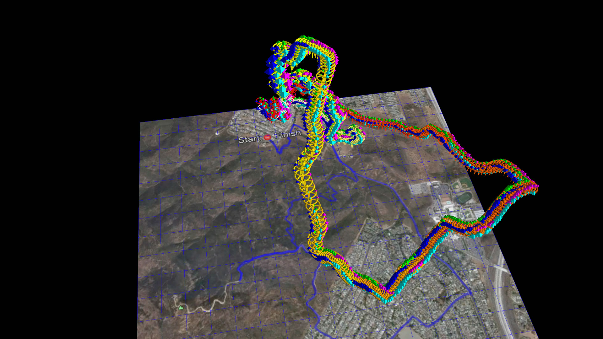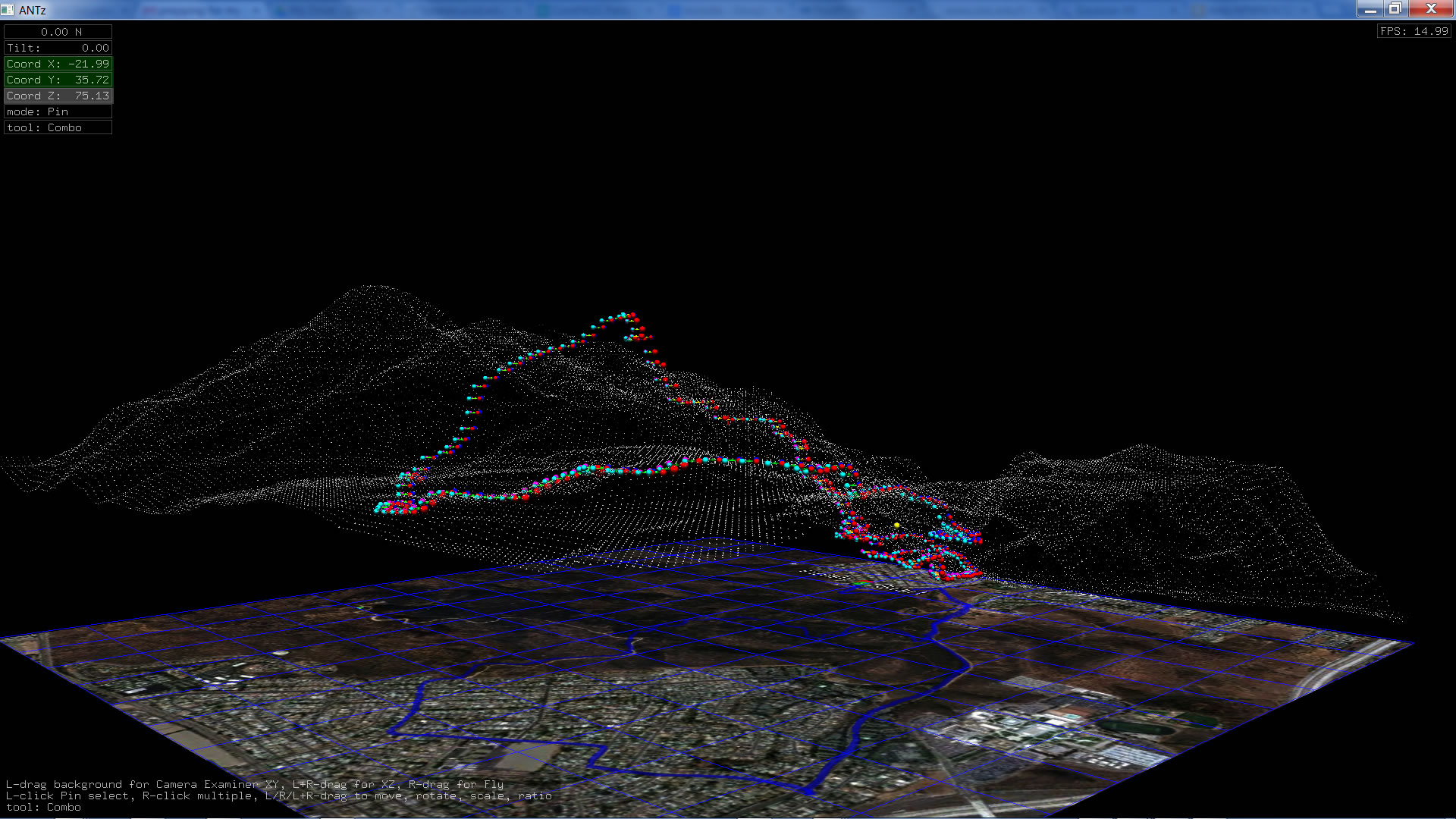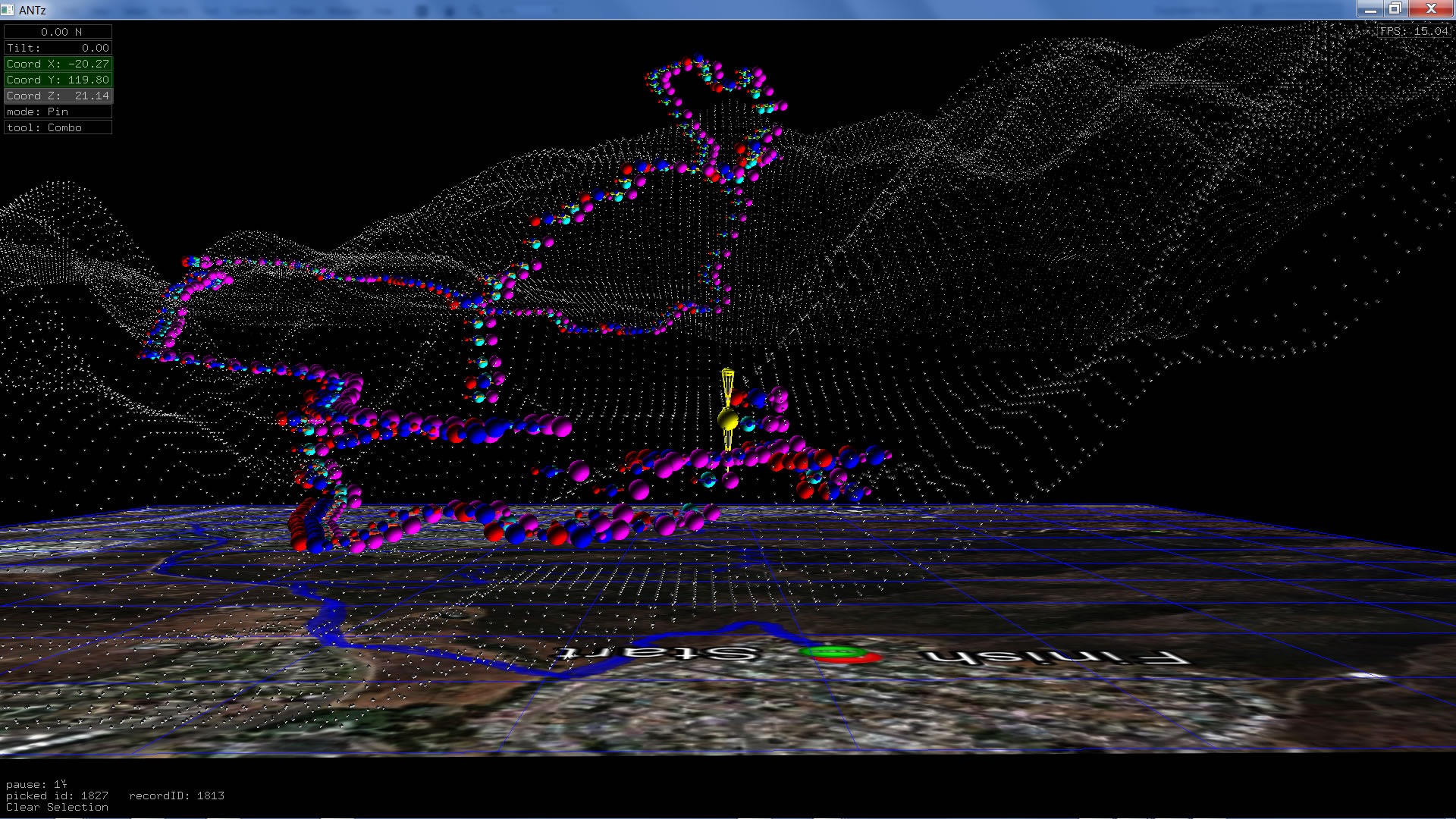 This is a hypothetical example of using ANTz channels to animate objects wherein object pulse rate correlates with physiological parameters including heart rate, respiration, etc.. Once the file is loaded, hit the P key to animate objects. The pulse rate correlates with heart rate, respiration rate, and other physiological parameters collected while riding uphill and downhill on Cowles Mountain in Mission Trails Regional Park, San Diego, California.