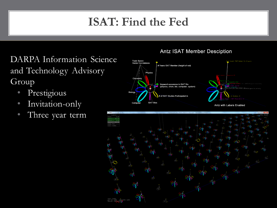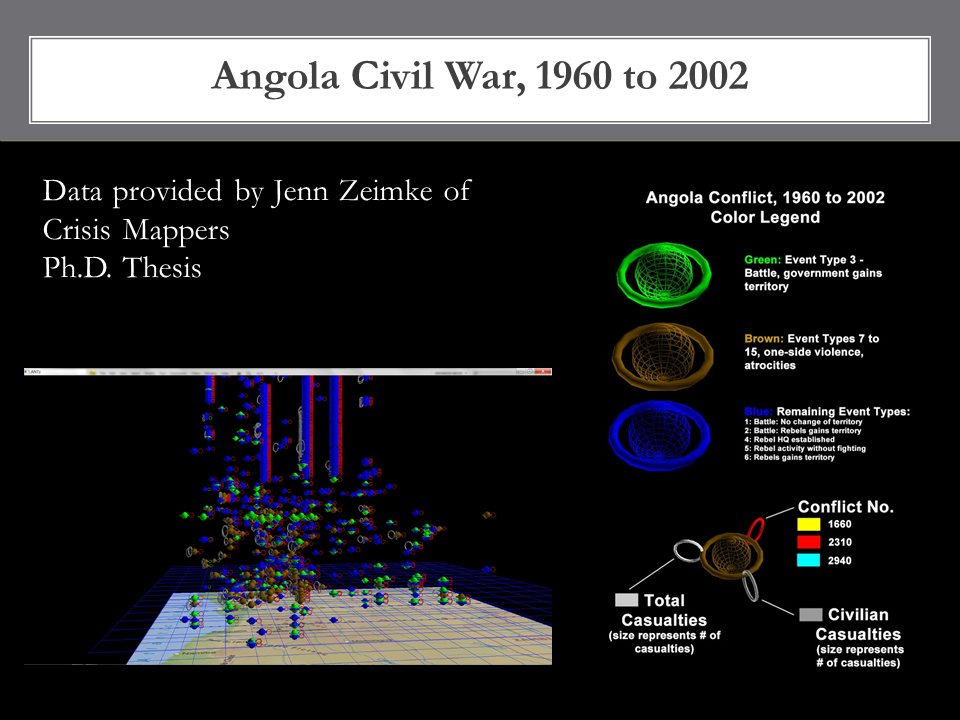 ANTz uses transparency in a non-intuitive way. Each object’s transparency is dependent on when it was created. If an object is behind another (semi-)transparent object created earlier in a sequence, it will not be visible. This can be leveraged. One way is to use a central parent object as a way to block the view of specific child objects based on POV, thus enhancing other child objects. The Afghanistan public health data is one example of this.