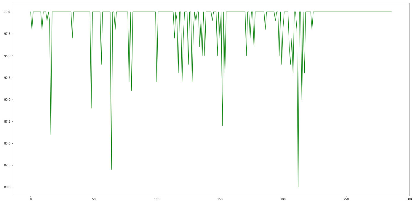 Data was collected for ~3 days, May 10, 1:00pm through May 13, 1:00pm. Data was sampled using the Twitter Search API once every 15 minutes, 96 samples per day, 288 total samples, 28443 total tweets, and 21190 unique users. Each sample requested the maximum number of tweets allowed for free which is 100 tweets. Some samples fell short of this maximum (see figure for Tweet Counts Per Sample). Tweet data was saved as text files in json format.