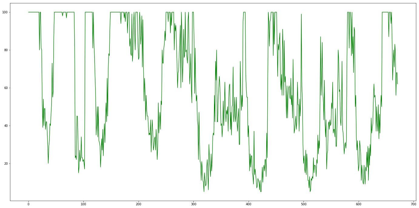 Data was collected for ~14 days, from April 5, 7:00pm through April 12, 6:00pm. Data was sampled using the Twitter Search API once every 15 minutes, 96 samples per day, 673 total samples, 66755 total tweets (some duplicates), and 20064 unique users. Each sample requested the maximum number of tweets allowed for free which is 100 tweets. Some samples fell short of this maximum (see figure for Tweet Counts Per Sample). Tweet data was saved as text files in json format.