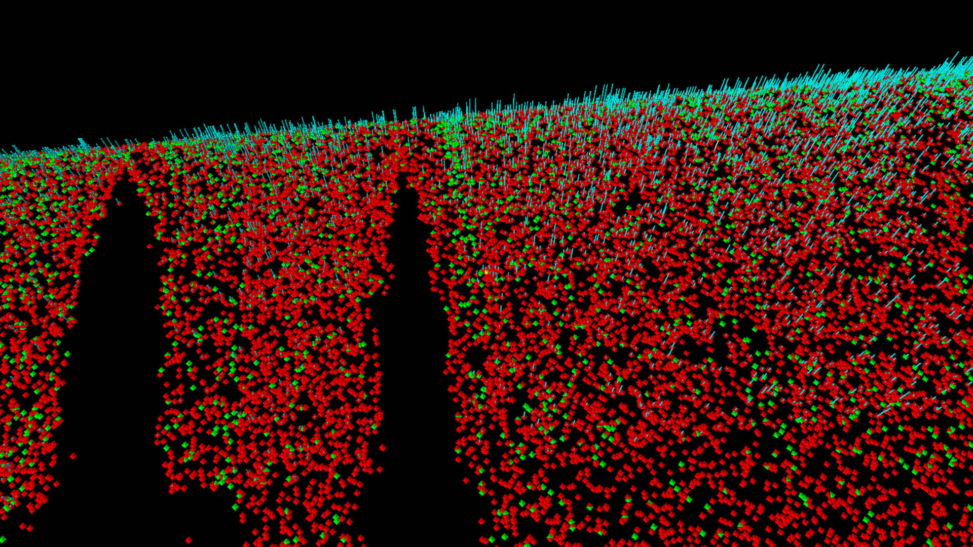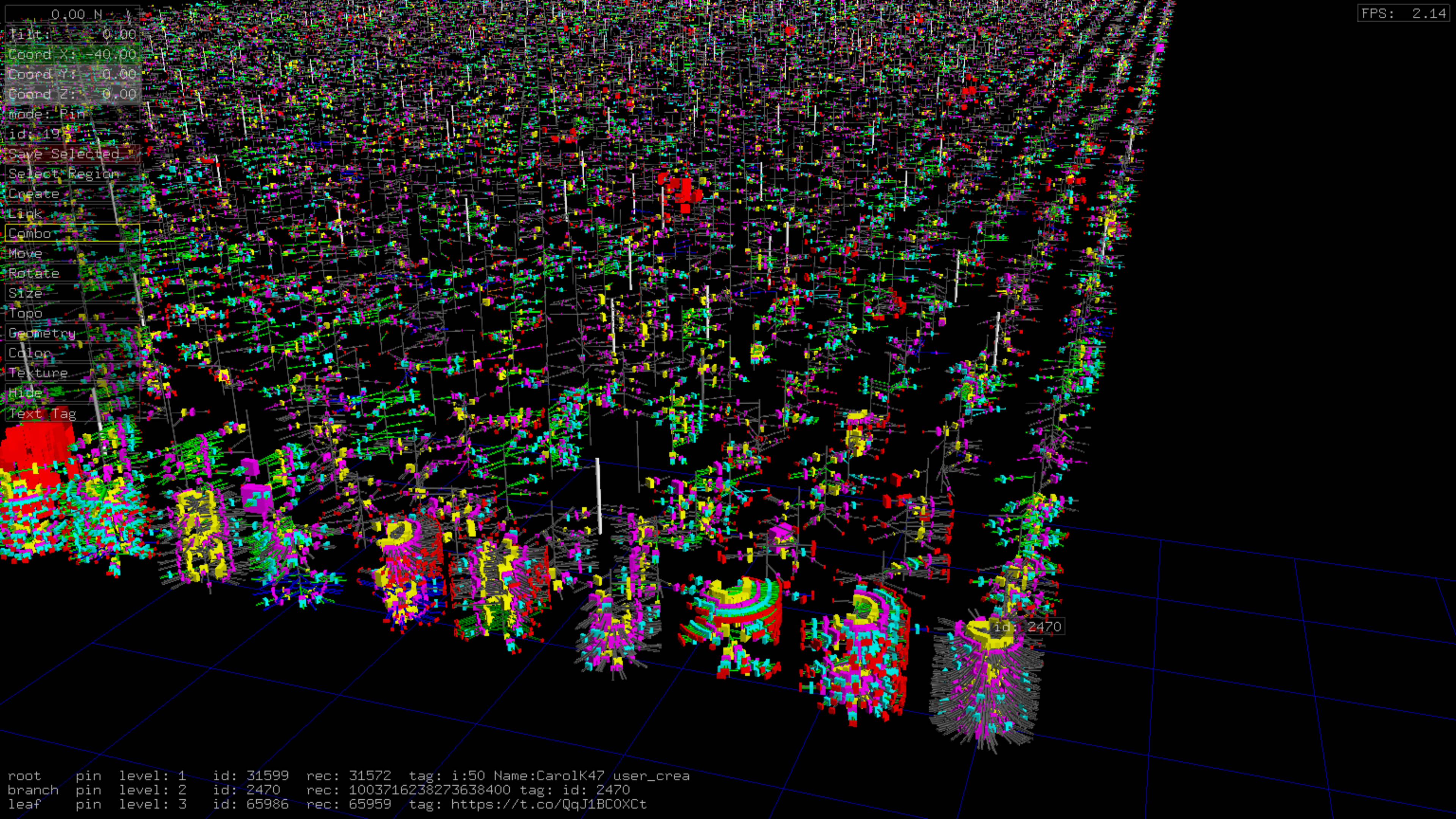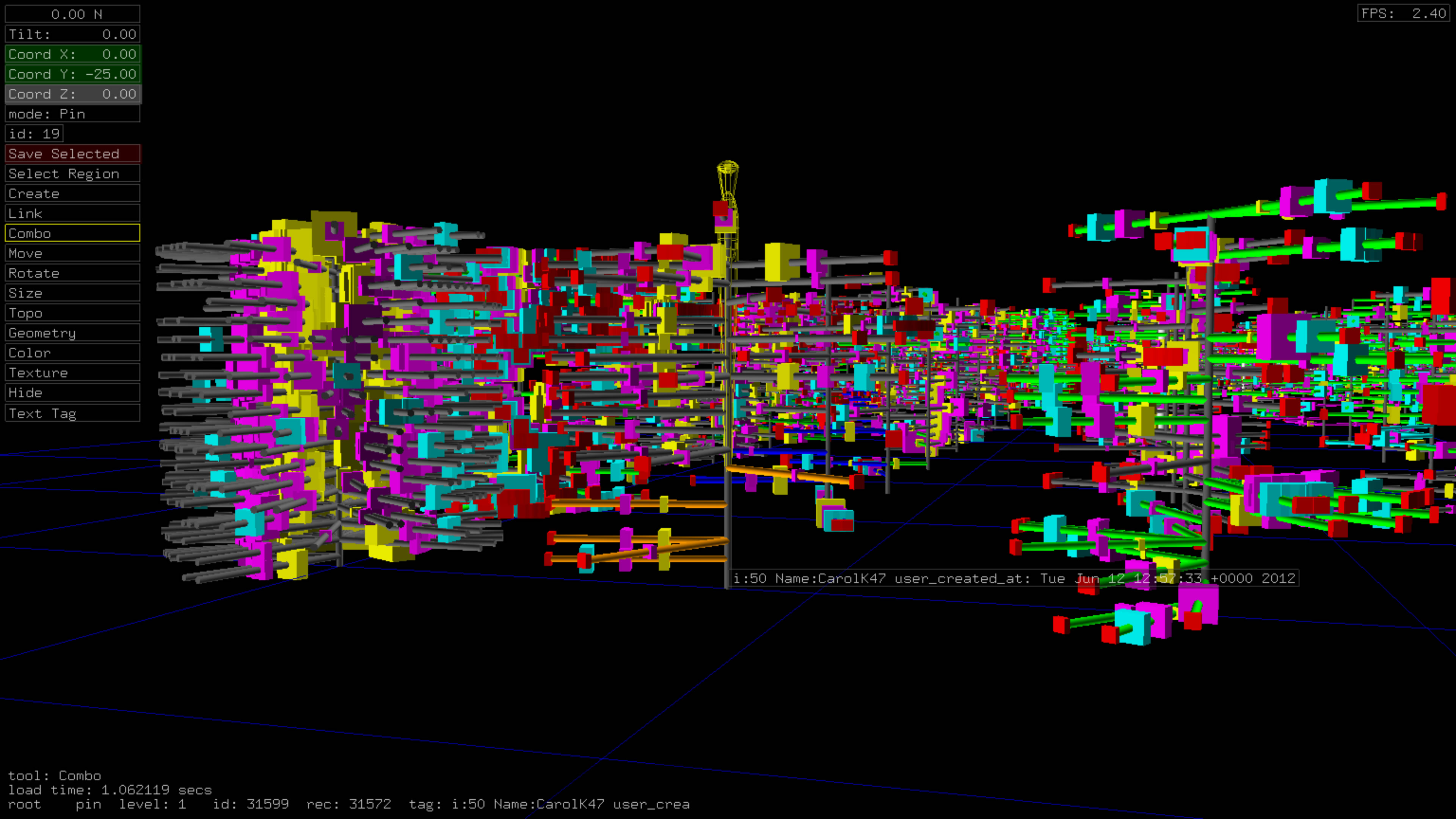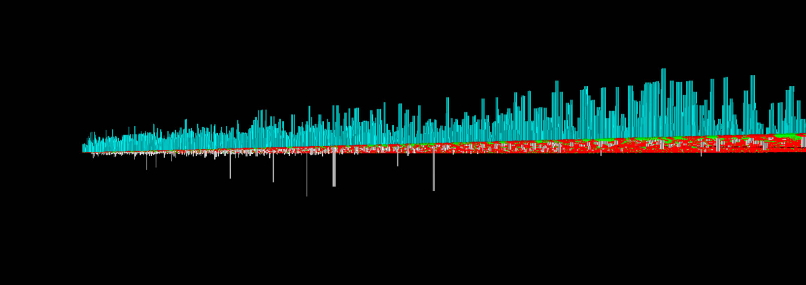 The original glyph design collapsed all days into a single level, to get a better sense of overall tweet behavior. Further modification expanded the temporal (vertical) axis to reveal individual daily tweet behavior as shown in the images below. Thus, a layered appearance shows individual days corresponding to individual layers.