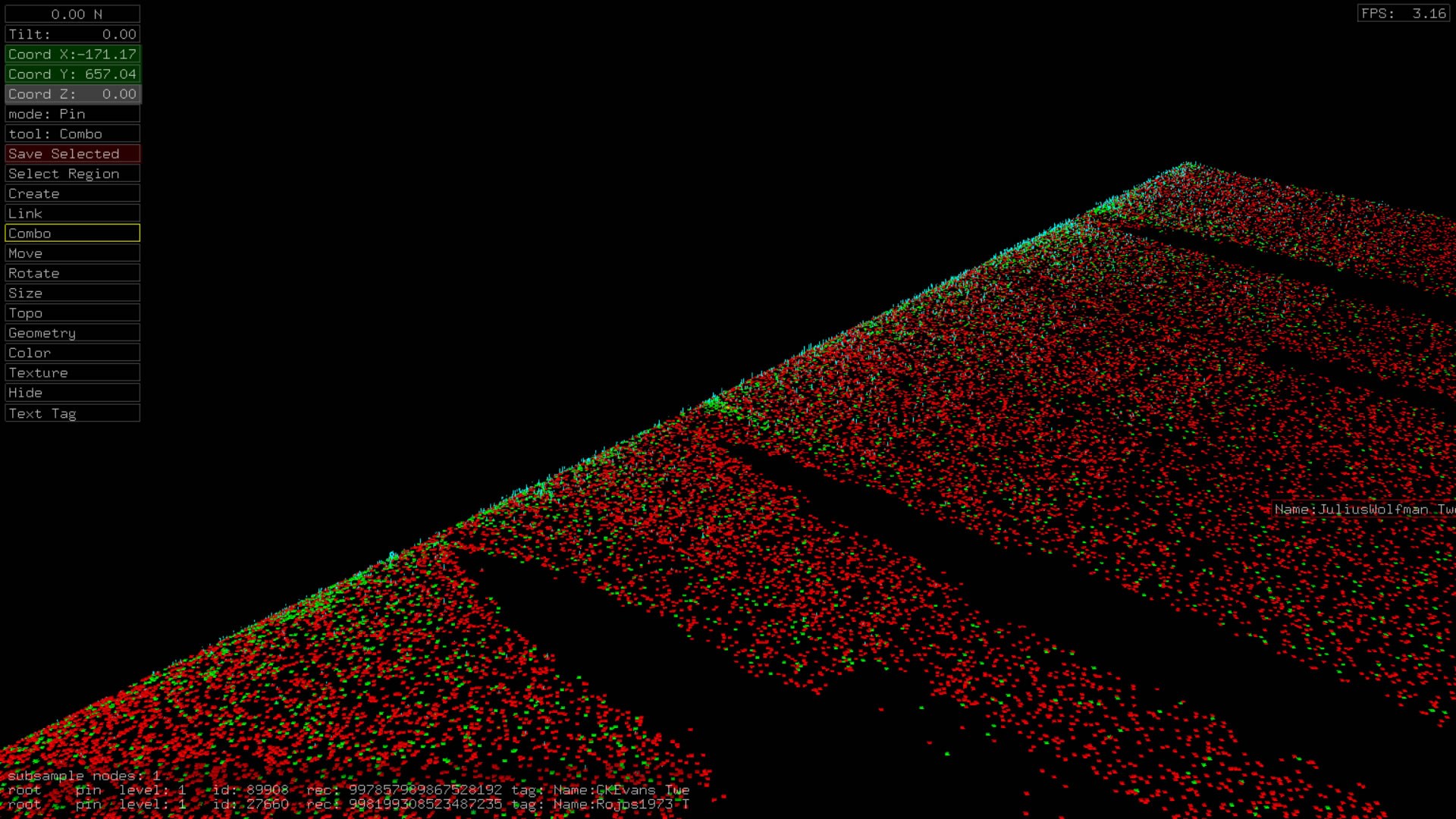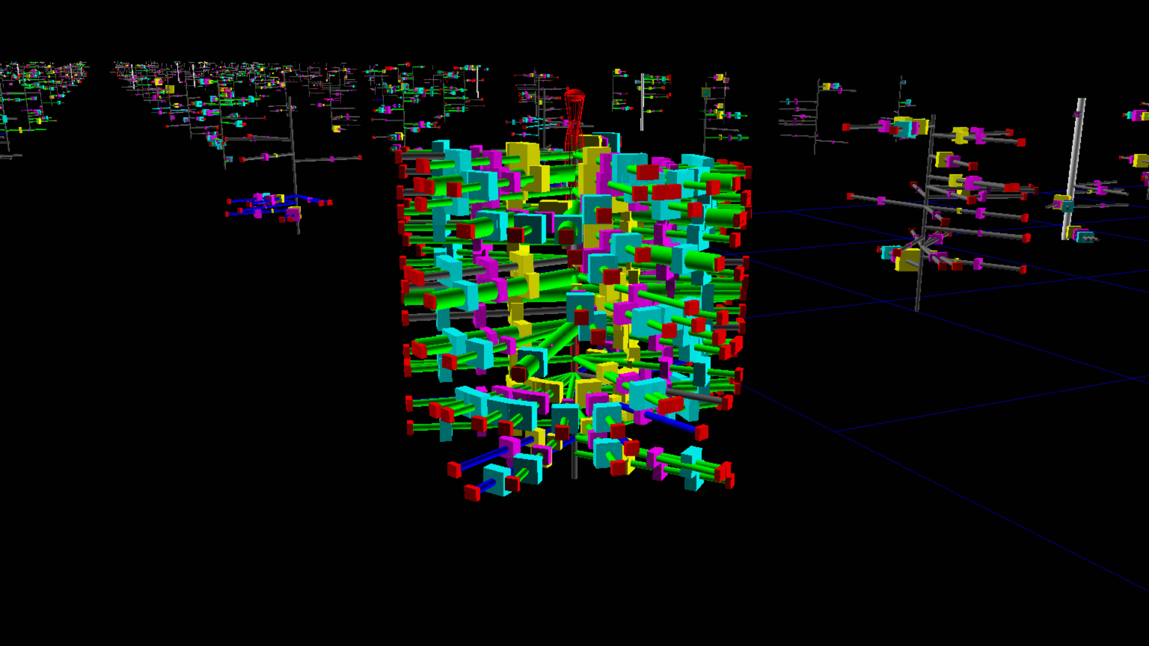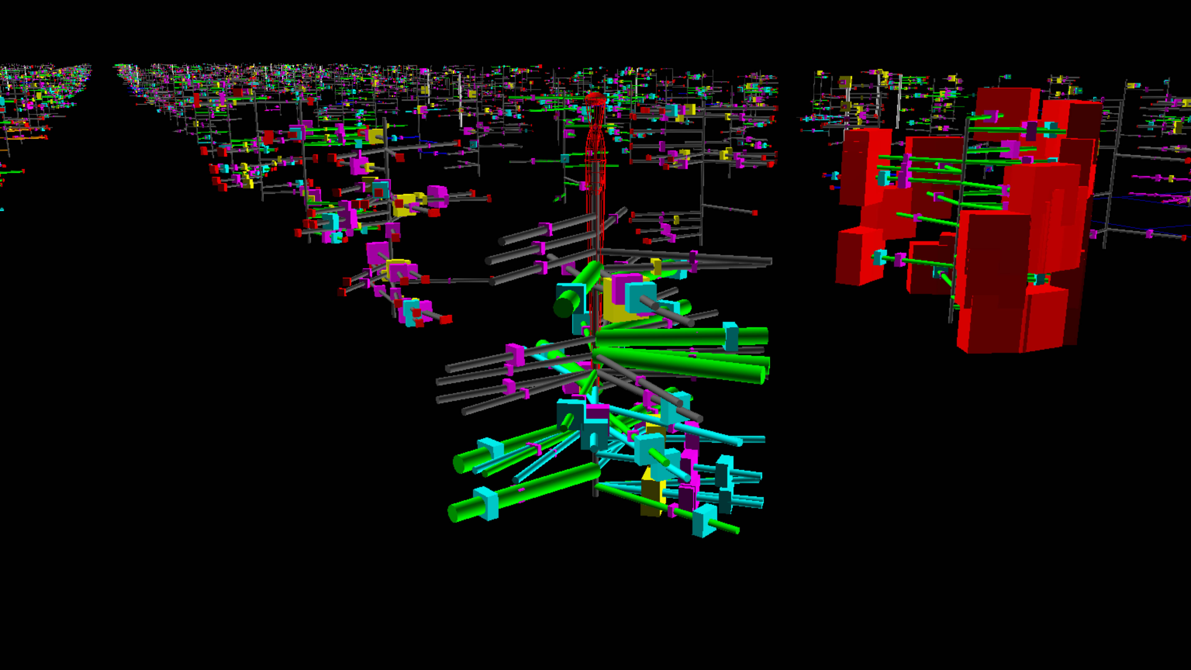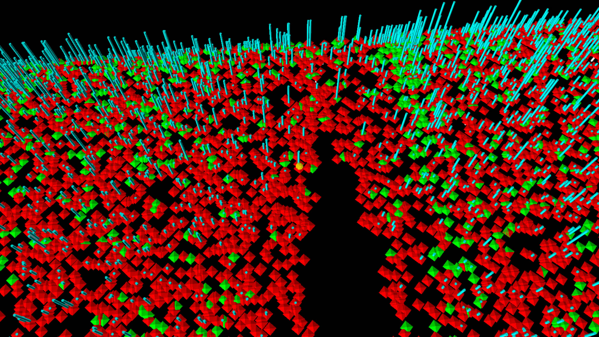 The original glyph design collapsed all days into a single level, to get a better sense of overall tweet behavior. Further modification expanded the temporal (vertical) axis to reveal individual daily tweet behavior as shown in the images below. Thus, a layered appearance shows individual days corresponding to individual layers.