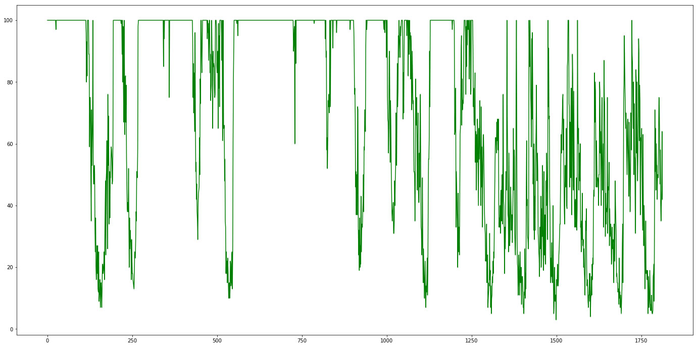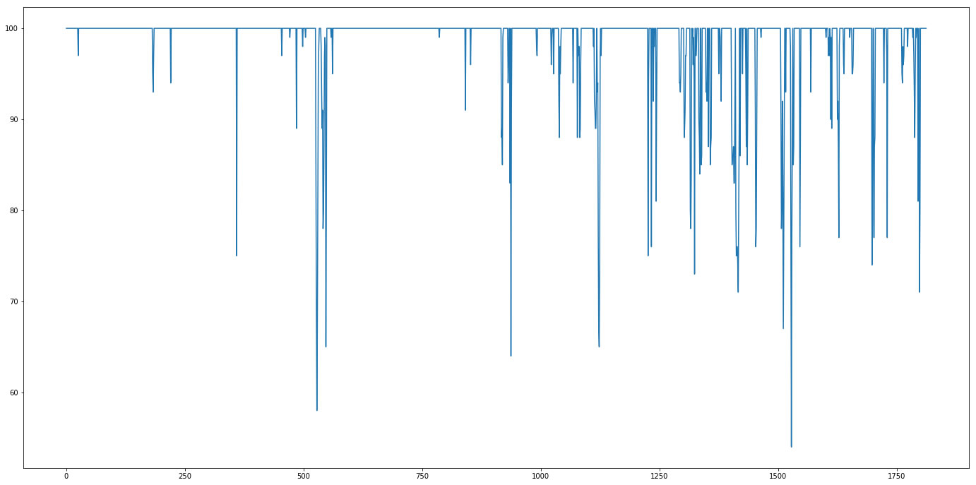 Data was collected for ~19 days, May 17, 6:30pm through June 5, 10:45am. Data was sampled using the Twitter Search API once every 15 minutes, 96 samples per day, 1814 total samples, 179004 total tweets (some duplicates), 52877 unique user accounts. Each sample requested the maximum number of tweets allowed for free which is 100 tweets. Some samples fell short of this maximum (see figure for Tweet Counts Per Sample). Tweet data was saved as text files in json format.