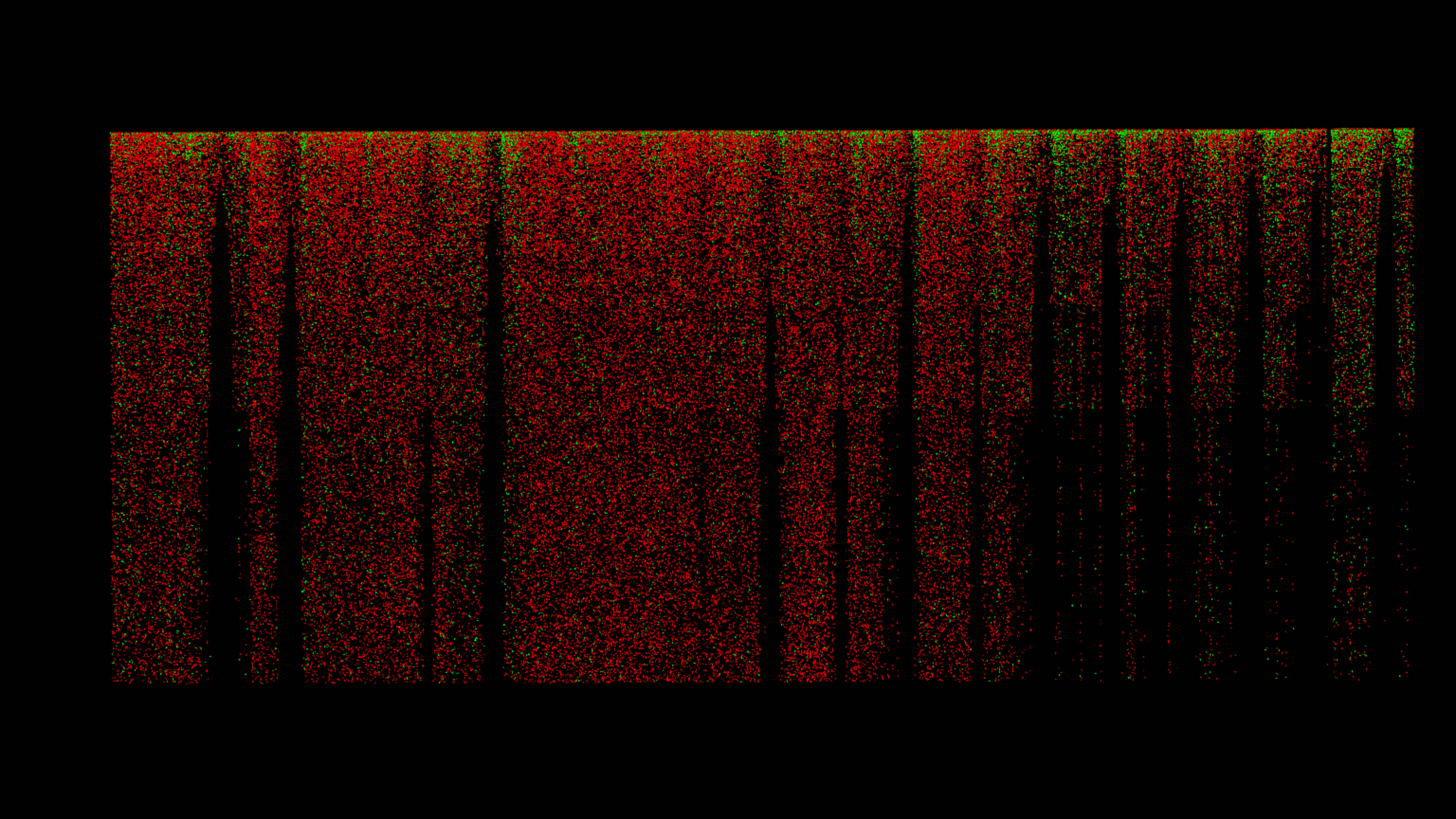 We used this glyph design to visualize the tweet behavior of users who tweeted multiple times in the #trumpcolluded data set. Images below include glyphs for the top 4000 retweeters sorted from left to right and top to bottom.